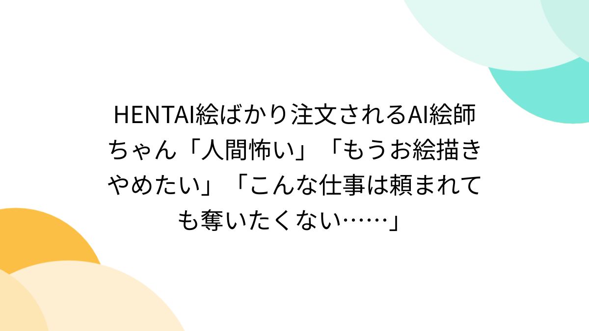 ![HENTAI絵ばかり注文されるAI絵師ちゃん「人間怖い」「もうお絵描きやめたい」「こんな仕事は頼まれても奪いたくない……」 - Togetter [トゥギャッター]](https://i0.wp.com/s.tgstc.com/ogp3/21007f01f56504c41e139c9619a7ccbc-1200x675.jpeg?ssl=1)